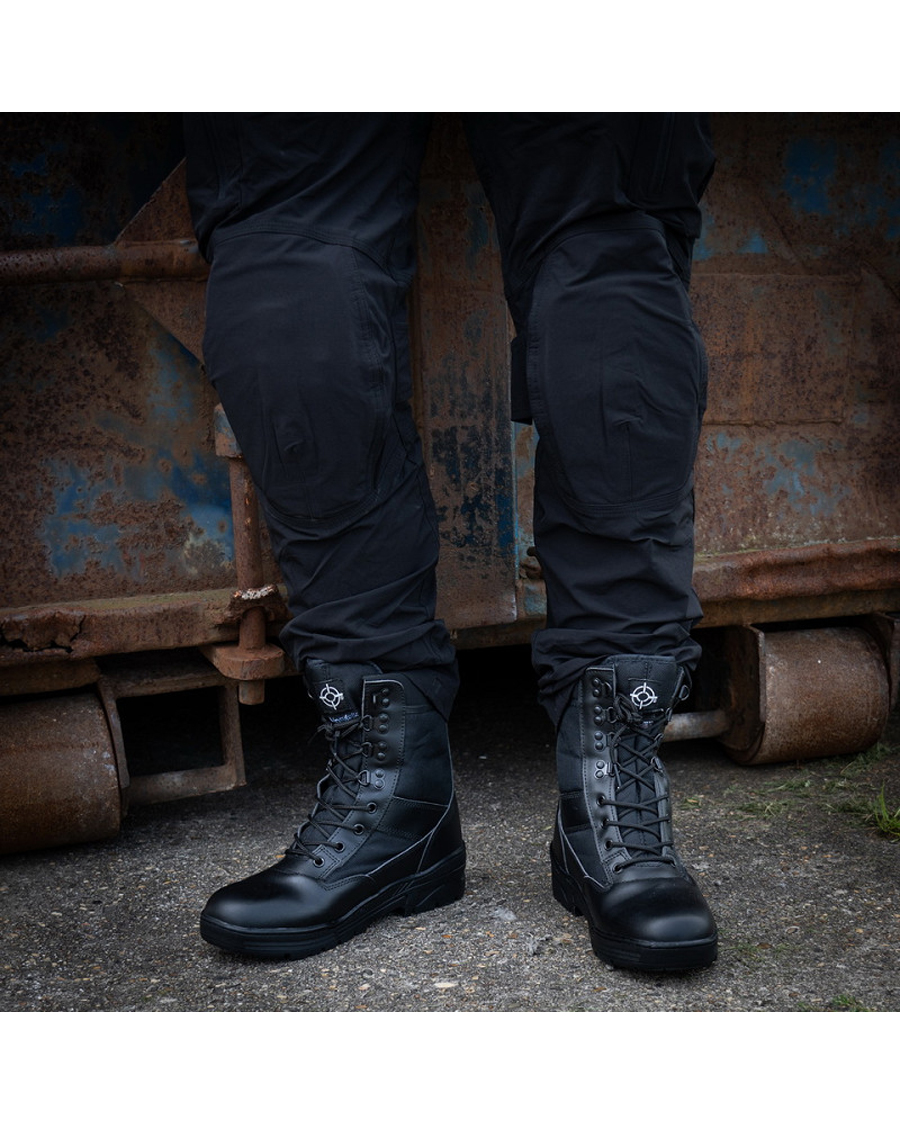 Die Sniper Boots bieten die perfekte Kombination aus Stärke, Komfort und Vielseitigkeit – ideal für taktische Einsätze, Outdoor-Abenteuer oder den robusten Alltag. Die schwarze Version unterscheidet sich von den grünen und khakifarbenen Modellen durch Kragen und Obermaterial, was für ein markantes Aussehen und Tragegefühl sorgt.